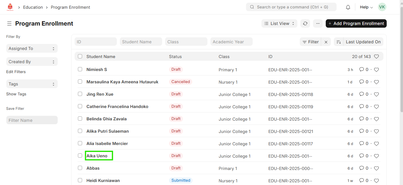 Navigation:Education > Program Enrollment