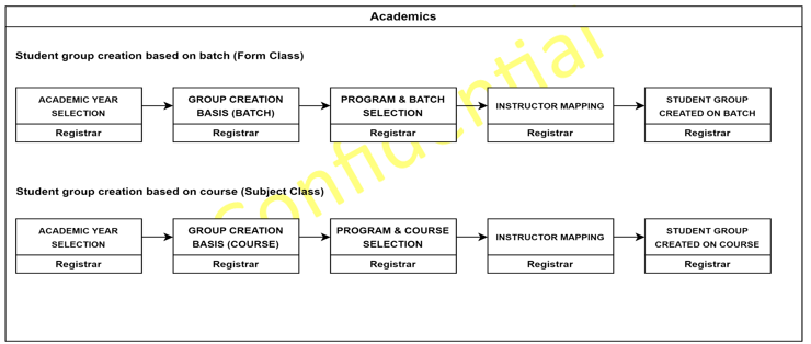 | Create Student Group (based on batch) | Registrar | Education > Student Group | [clich here] |