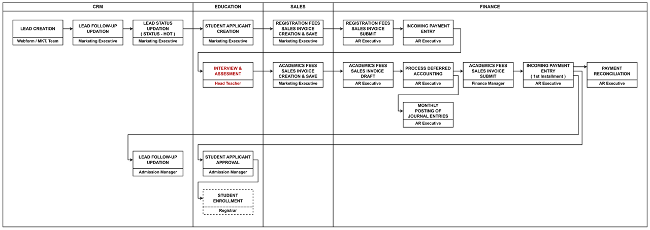 | Academic Fees Sales Invoice Creation | Marketing Executive | Navigation: Home > Education> Student Applicant> Create Sales Invoice OR Navigation: Home > Selling > Sales Invoice | Click here |