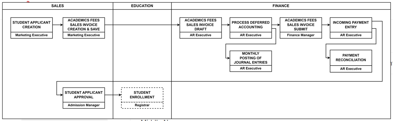 | Academic Fees Sales Invoice Creation | AR Executive | Navigation: Home > Education > Fee Schedule list > Select Create Sales Invoice | Click here |