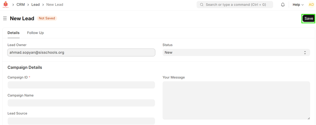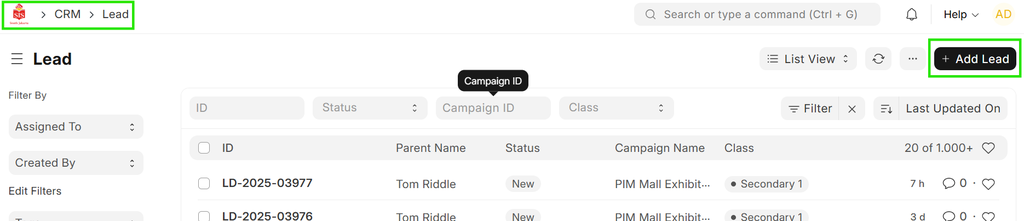 - Click on New Lead
