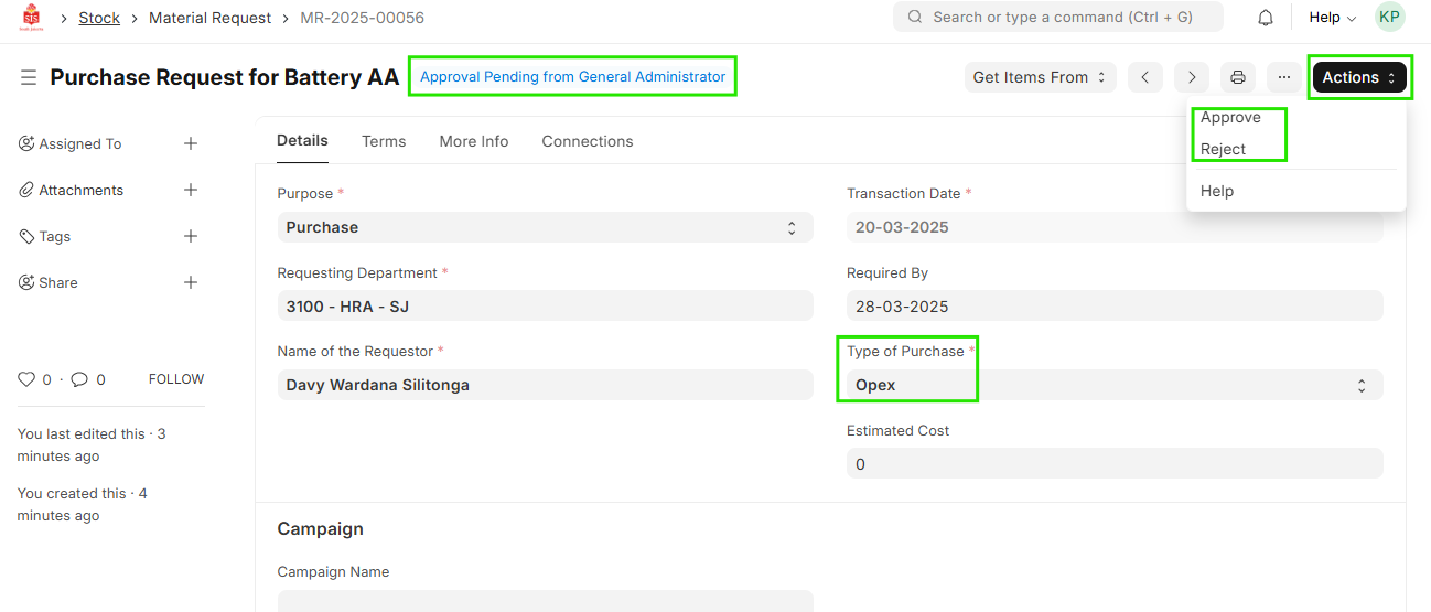 - If yes, Check Material Request data, Supplier quotation attached or not, If under Budget ect.