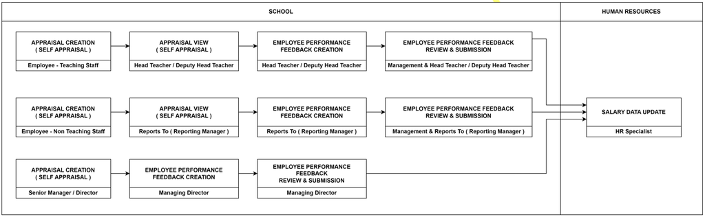 | Employee Performance Feedback Creation | Head Teacher or General Administrator | Navigation: Home > Select HR Module > Select Performance > Employee Performance Feedback | [[Click here]] |