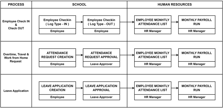 | Employee Check - Out | Employee | Navigation: Home > Select HR Module > Select Shift & Attendance > Select Employee Checkin | [[Click here]] |
