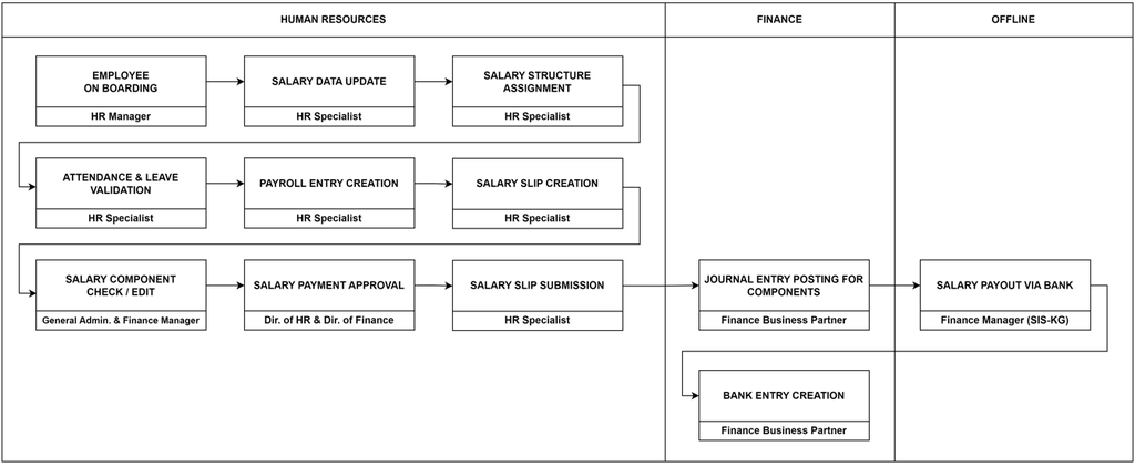 | Salary Slips approval | Director of HR/ Director of Finance | Home > Payroll > Salary Slip | [[Click here]] |