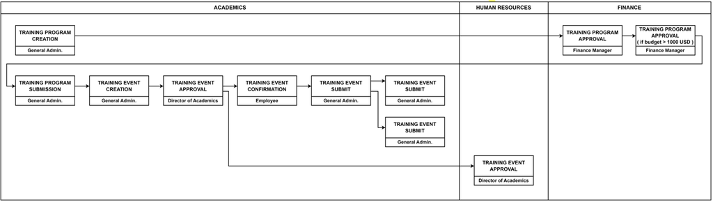 | Training Request Form Approval | Head Teacher Director of Academics Director of Human Resources Director of Finance | Navigation: Home > Select HR Module > Select Employee Lifecycle > Training Request Form | [[Click here]] |
