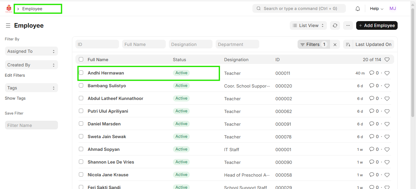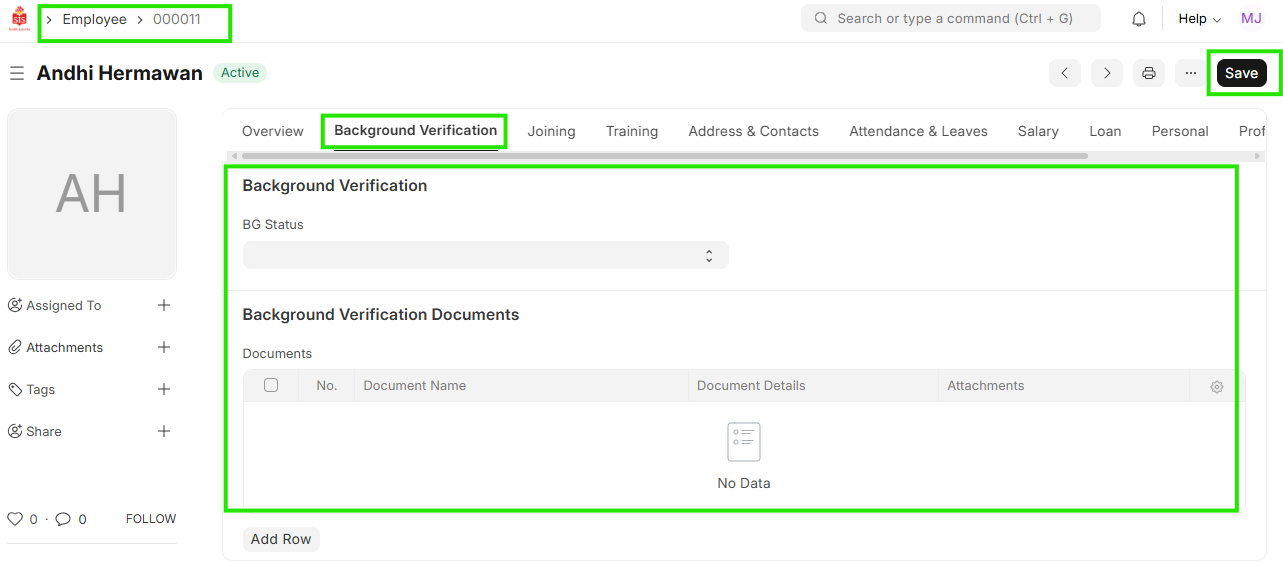 - Select the Employee for which the background verification data needs to be updated.