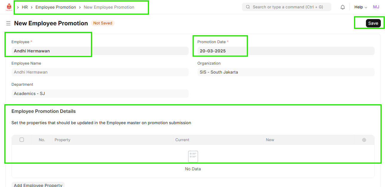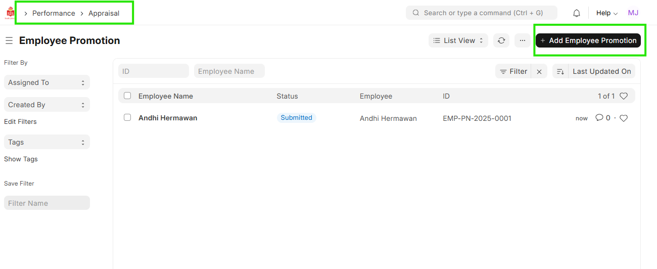 Navigation: Home > Select HR Module > Select Performance > Employee Promotion