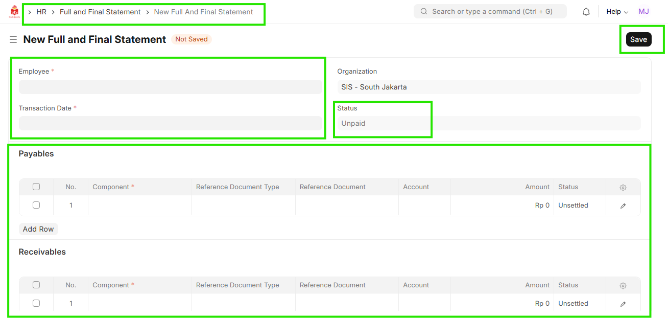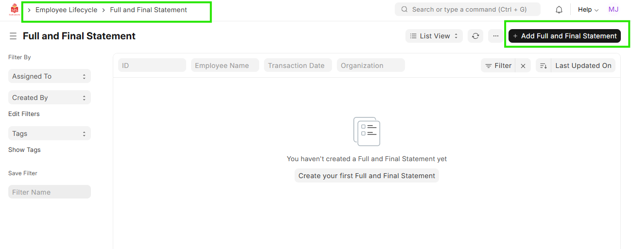 Navigation: Home > Select HR Module > Select Employee Lifecycle > Full and Final Settlement