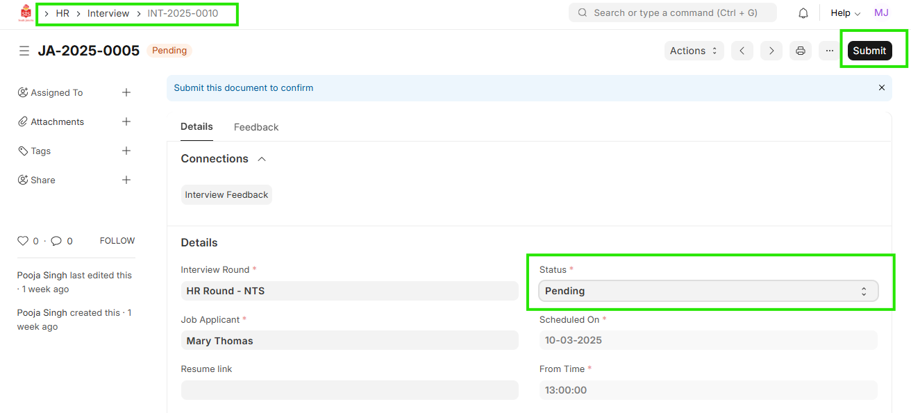 Navigation: Home > Select HR Module > Select Recruitment > Select Interview