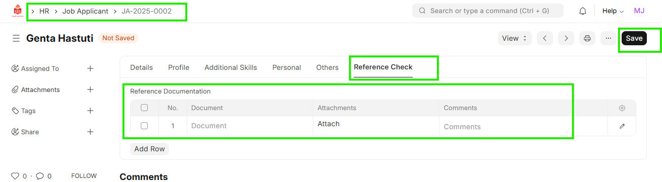 - Click on Job Applicant you want to fill data for reference check.