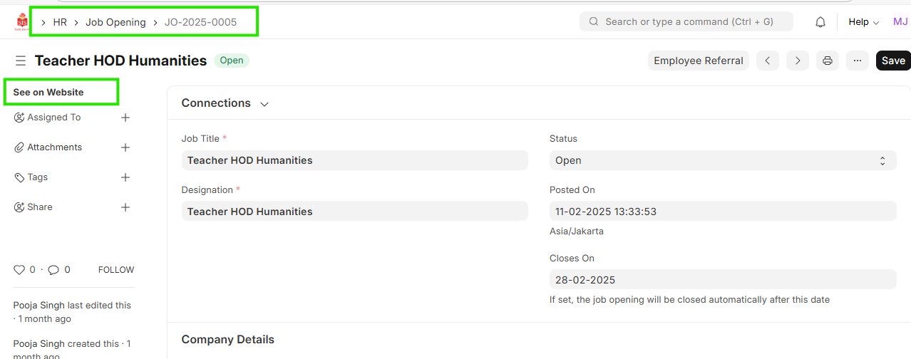 - Click on Job Opening