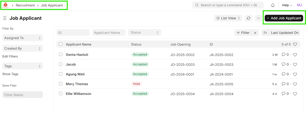 - Click on ""Add Job Applicant""