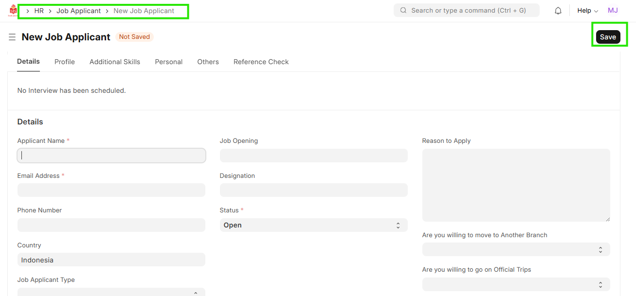 HR-Job Applicant Creation