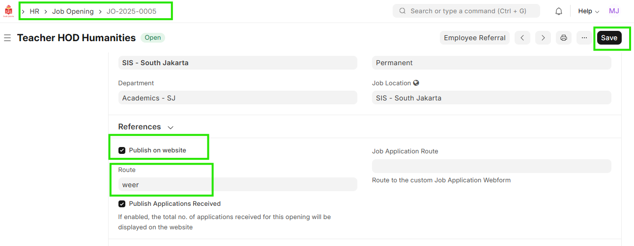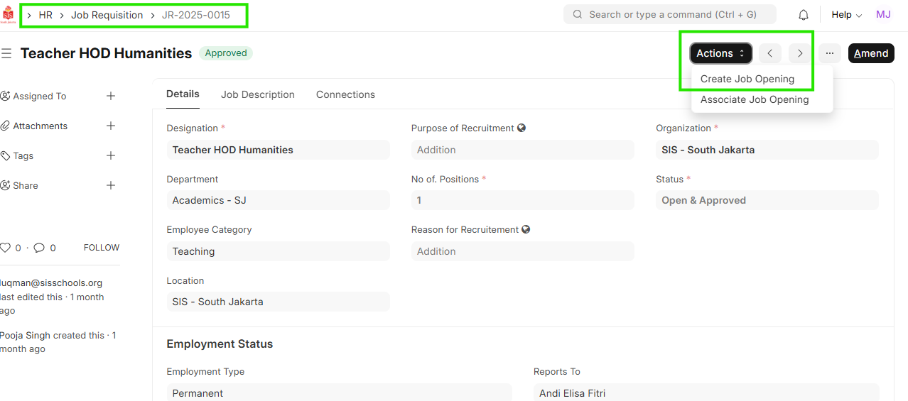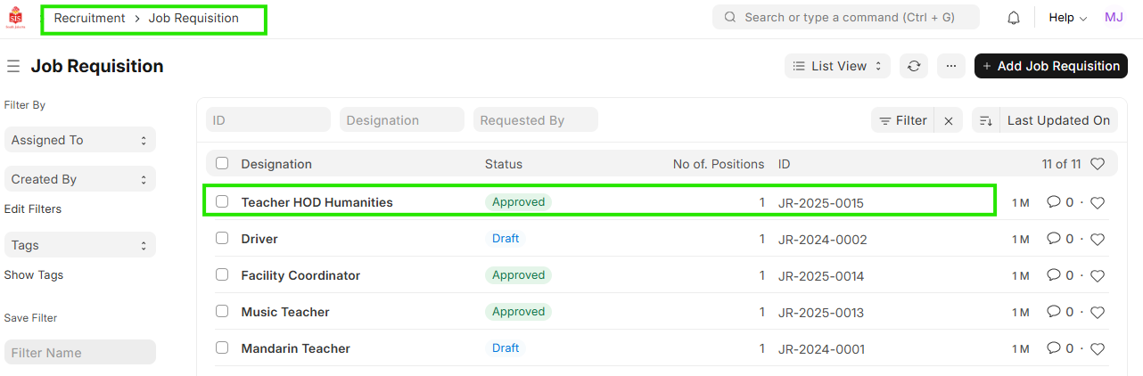 Navigation: Home > Select HR Module > Select Recruitment > Job Requisition