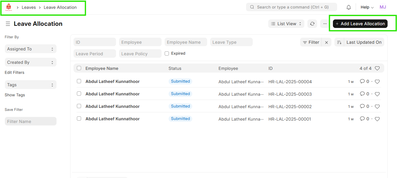 Navigation: Home > Select HR Module > Select Leaves > Select Leave Policy Assignment