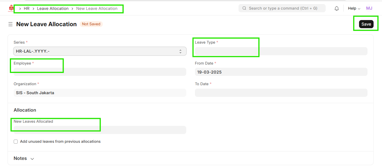 - Select ""Employee"", ""Leave Type"", ""From Date"", ""To Date""