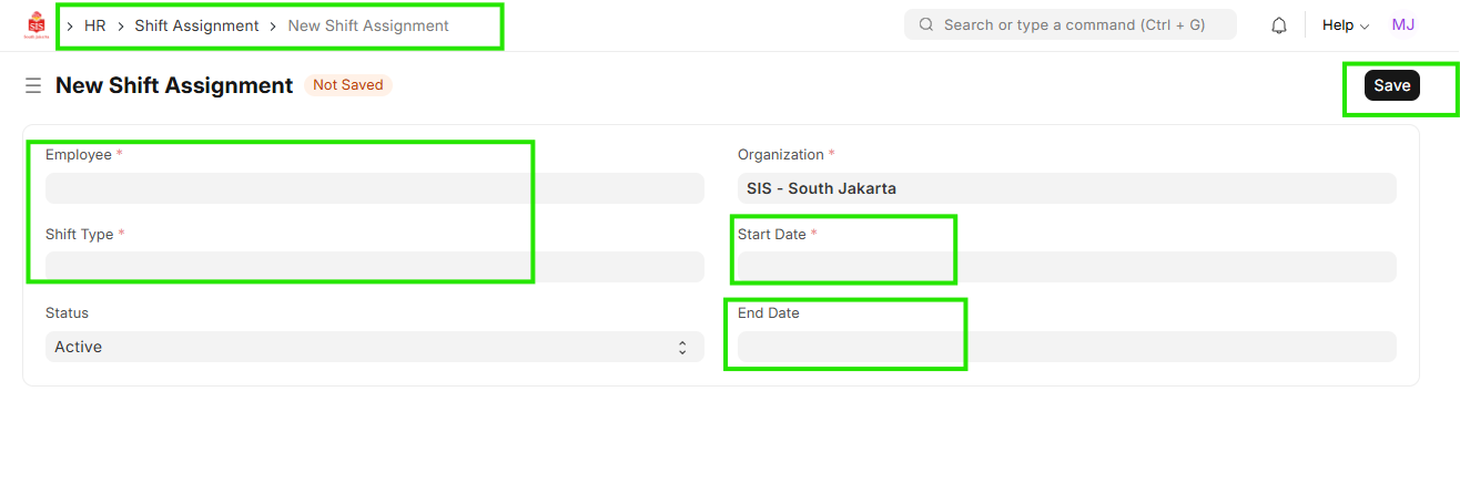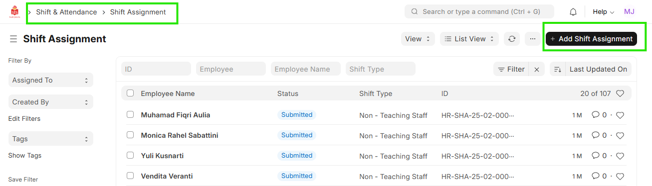Navigation: Home > Select HR Module > Select Shift & Attendance > Select Shift Assignment