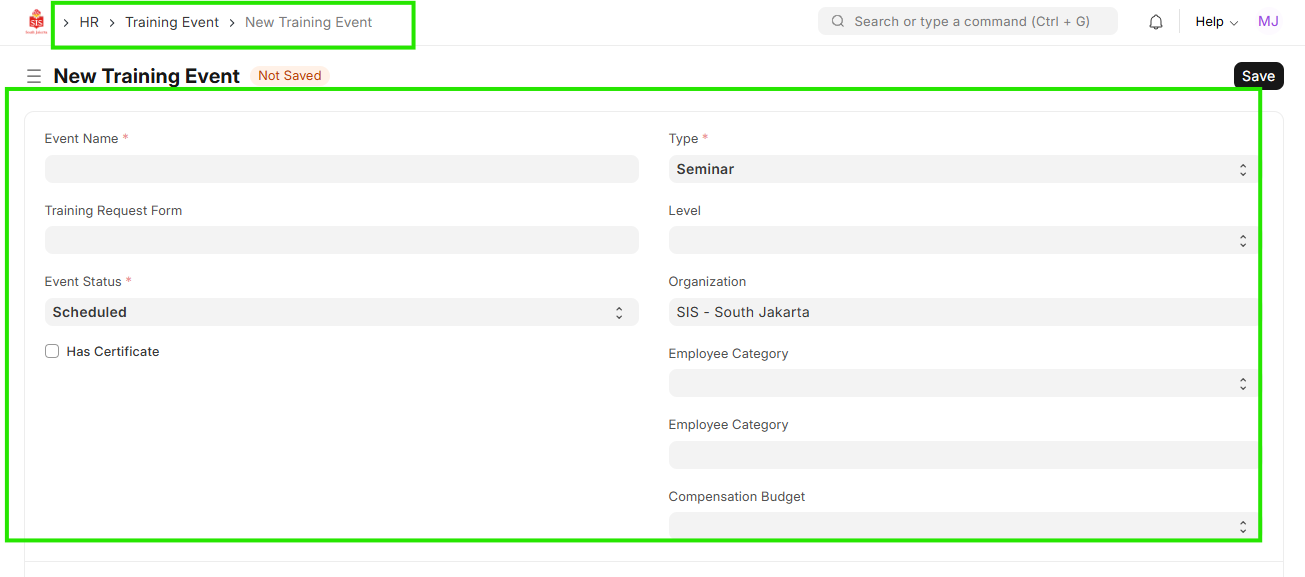 - Fill the various details in the training event.