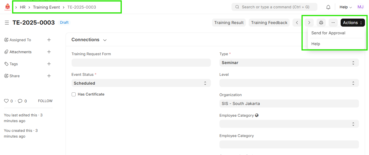 Navigation: Home > Select HR Module > Select Employee Lifecycle > Training Event