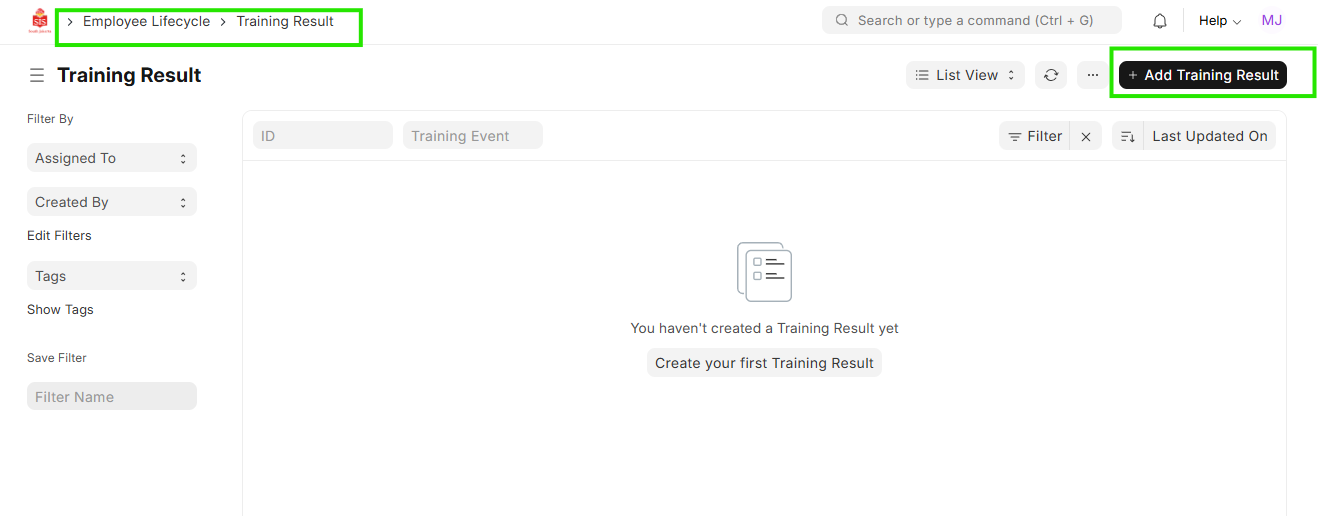 Navigation: Home > Select HR Module > Select Employee Lifecycle > Training Results